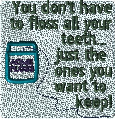 These are very cute dentist sayings with a knockdown stitch upfront.  If you dont want the knockdown stitch, because you are stitching on a flat towel without pile then omit that color sequence by forward to the next color in the design file.   These are apx 10K without knockdown and 18K with knockdown.  The knockdown creates a canvas of stitching per say to hold the pile of the towel down.   These are sized for a 4×4 hoop.