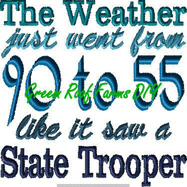 This design is sure to please anyone who is finding the weather changes humorous. This design comes in a two design pack; with and without a knockdown. This is sized for a 4×4 hoop and is 9K sttiches without knockdown and 16k stitches with knockdown .